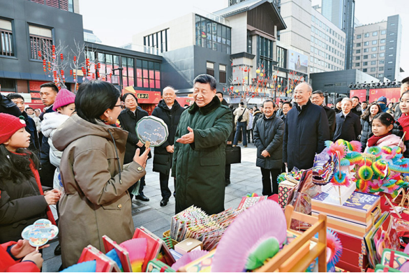 2026年2月9日至10日,中共中央总书记、国家主席、中央军委主席习近平在北京考察并看望慰问基层干部群众。这是10日上午,习近平在东城区隆福寺街区新春市集考察时,同现场群众亲切交流。新华社记者 燕雁/摄