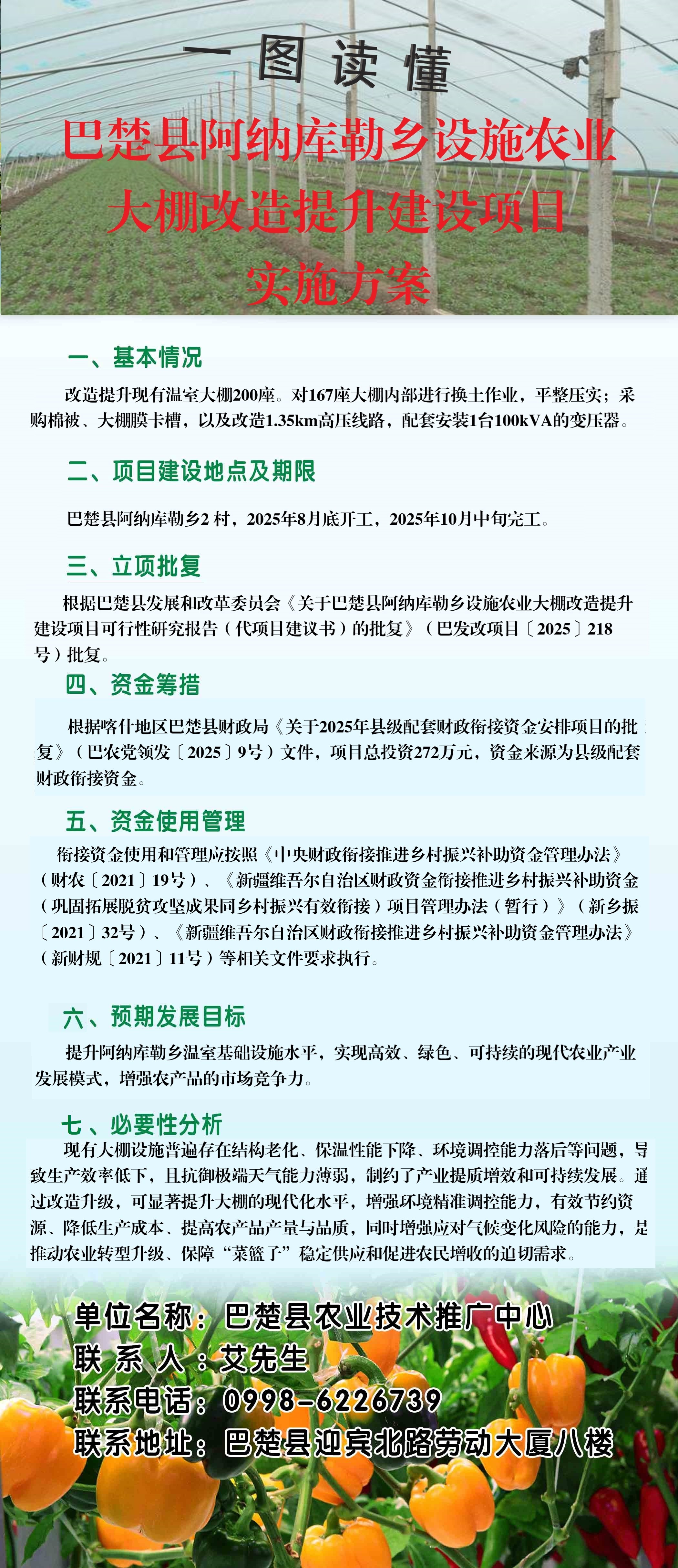 关于《巴楚县阿纳库勒乡设施农业大棚改造提升建设项目实施方案》的公示