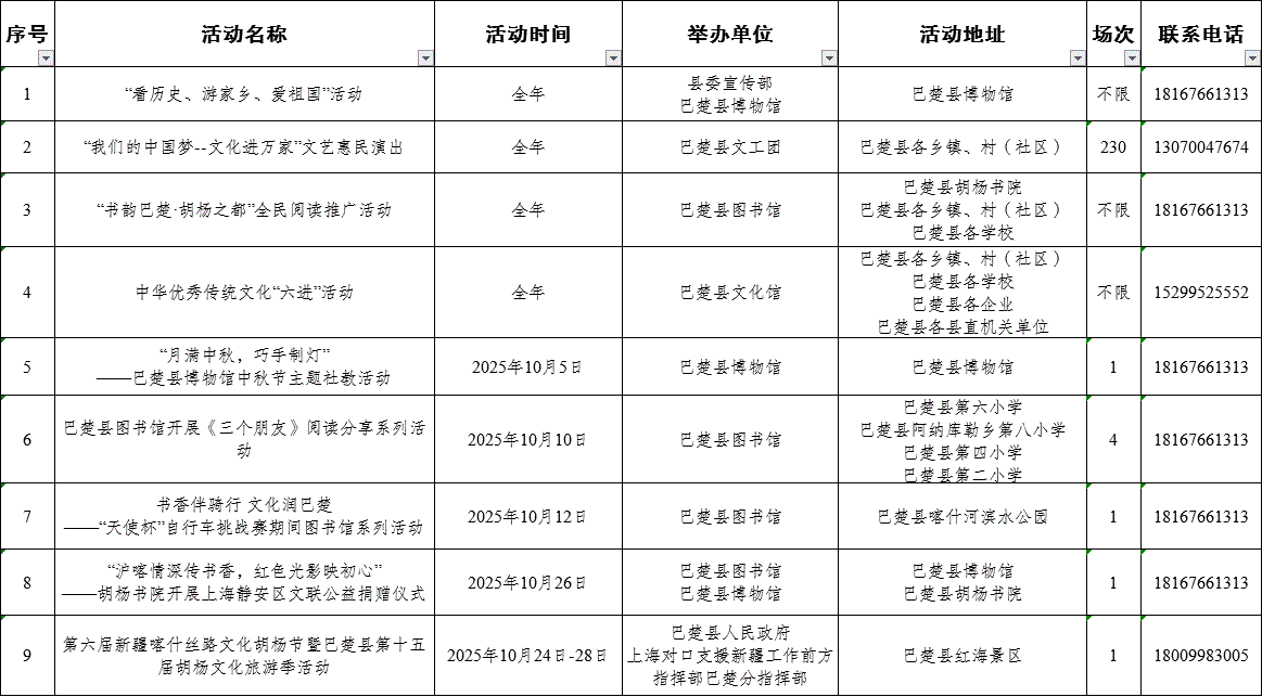 巴楚县2025年第四季度群众文化活动信息统计表