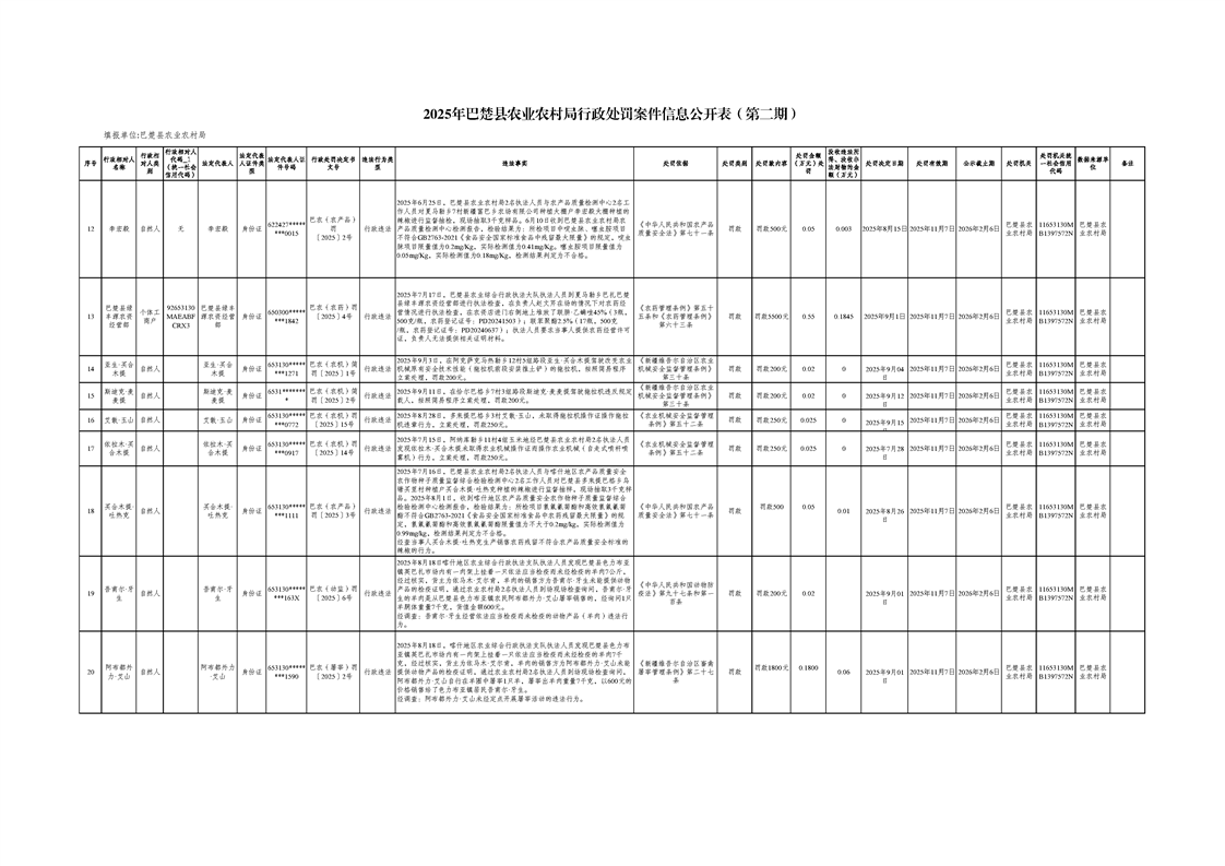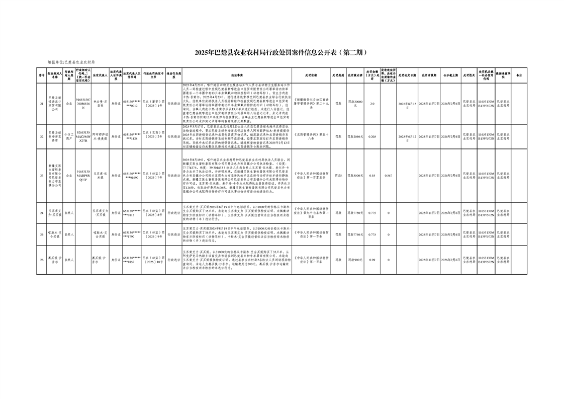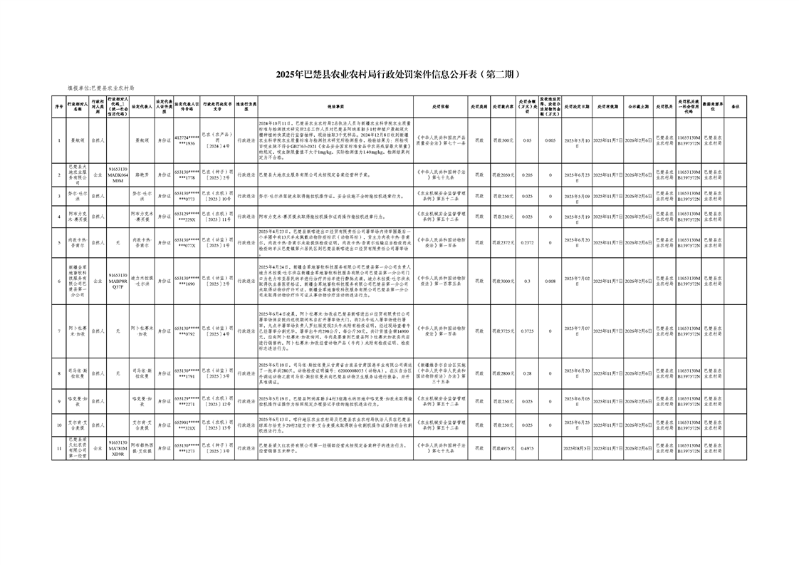 2025年巴楚县农业农村局行政处罚案件信息公开