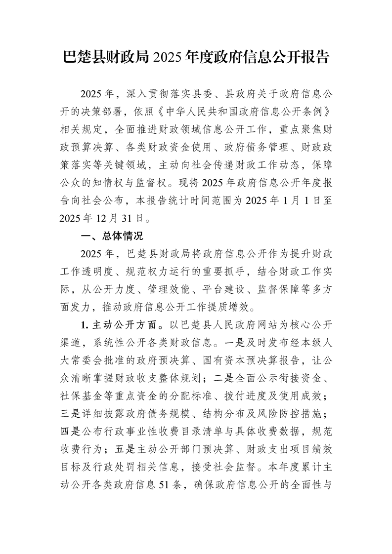 巴楚县财政局2025年政府信息公开工作年度报告