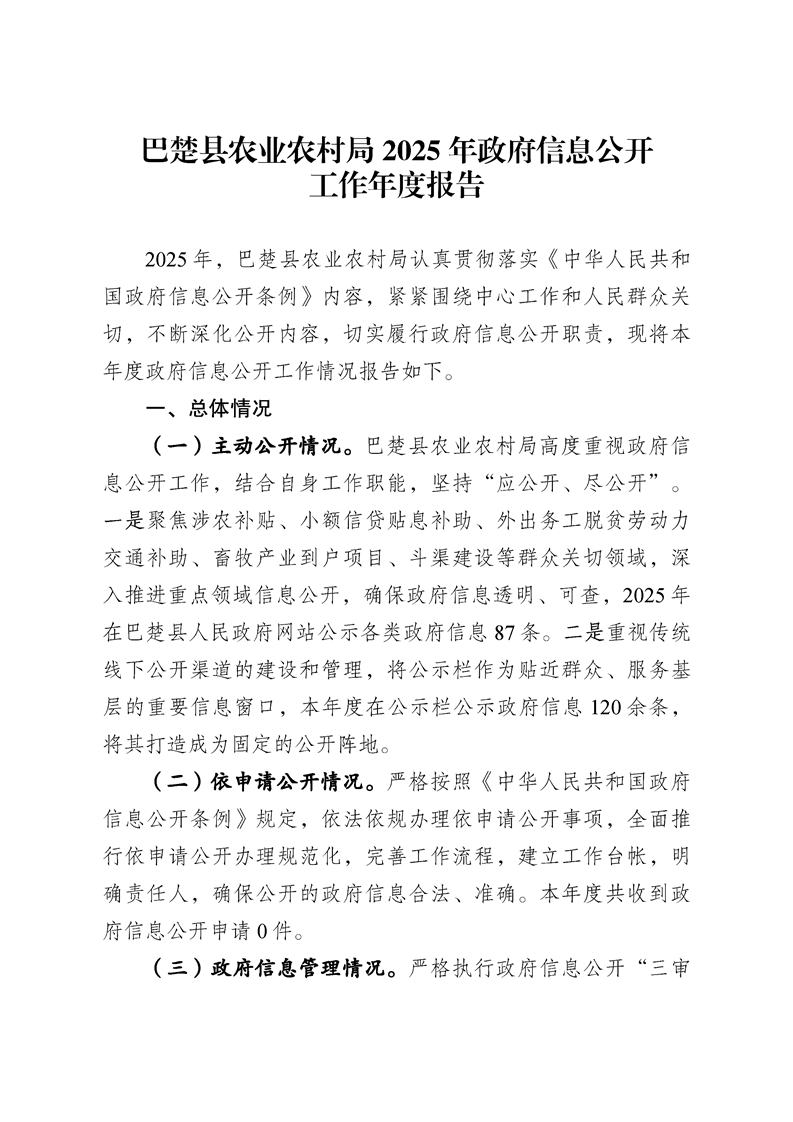 巴楚县农业农村局2025年政府信息公开工作年度报告