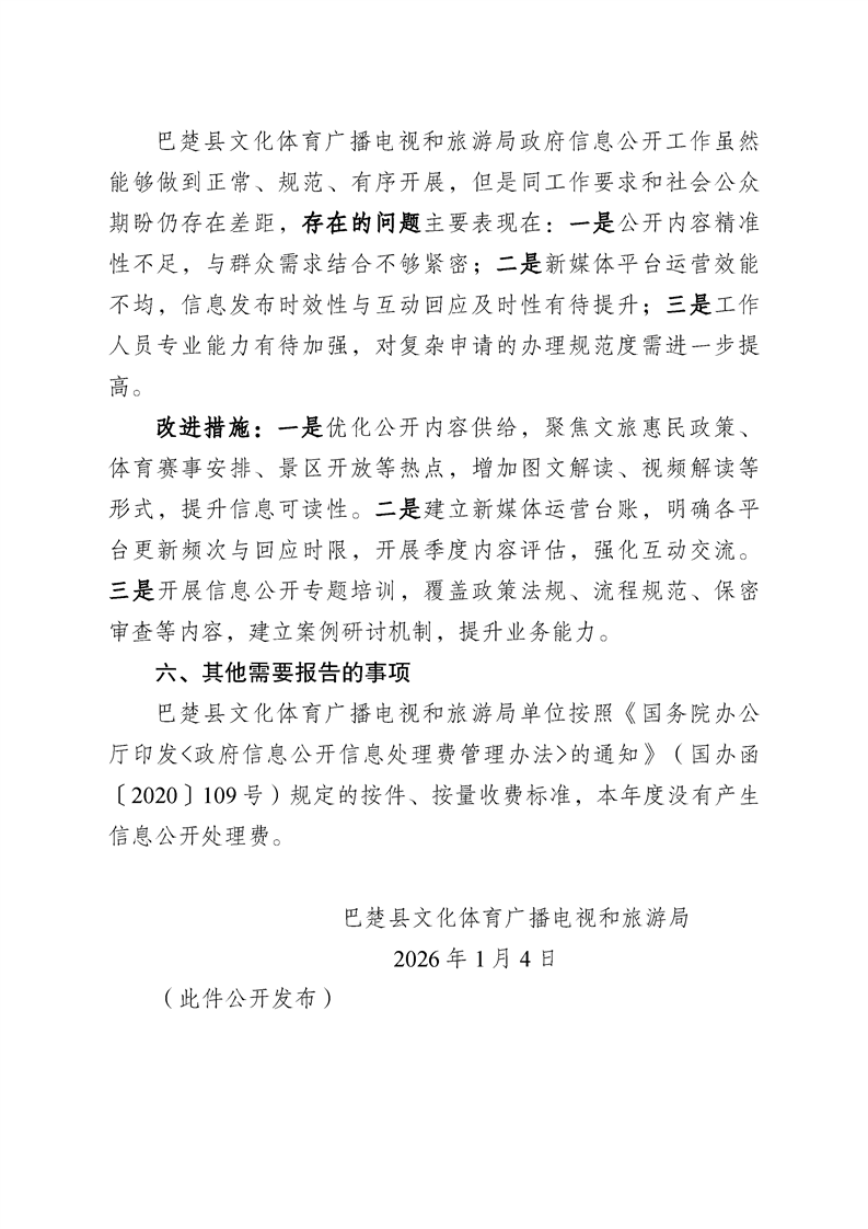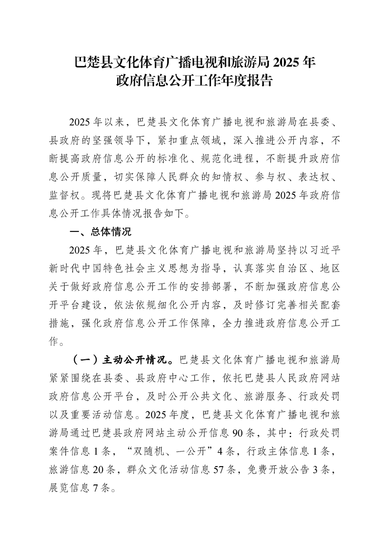 巴楚县文化体育广播电视和旅游局2025年政府信息公开工作年度报告