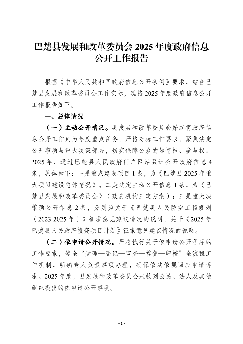 巴楚县发展和改革委员会2025年政府信息公开工作年度报告