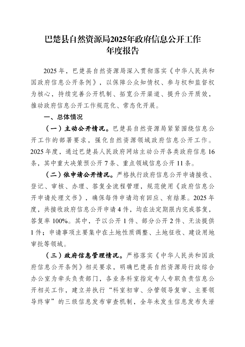 巴楚县自然资源局2025年政府信息公开工作年度报告