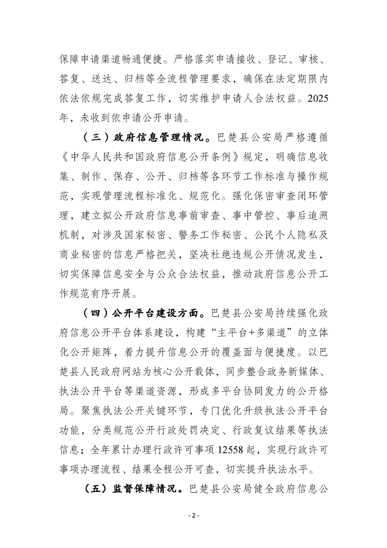巴楚县公安局2025年政府信息公开工作年度报告