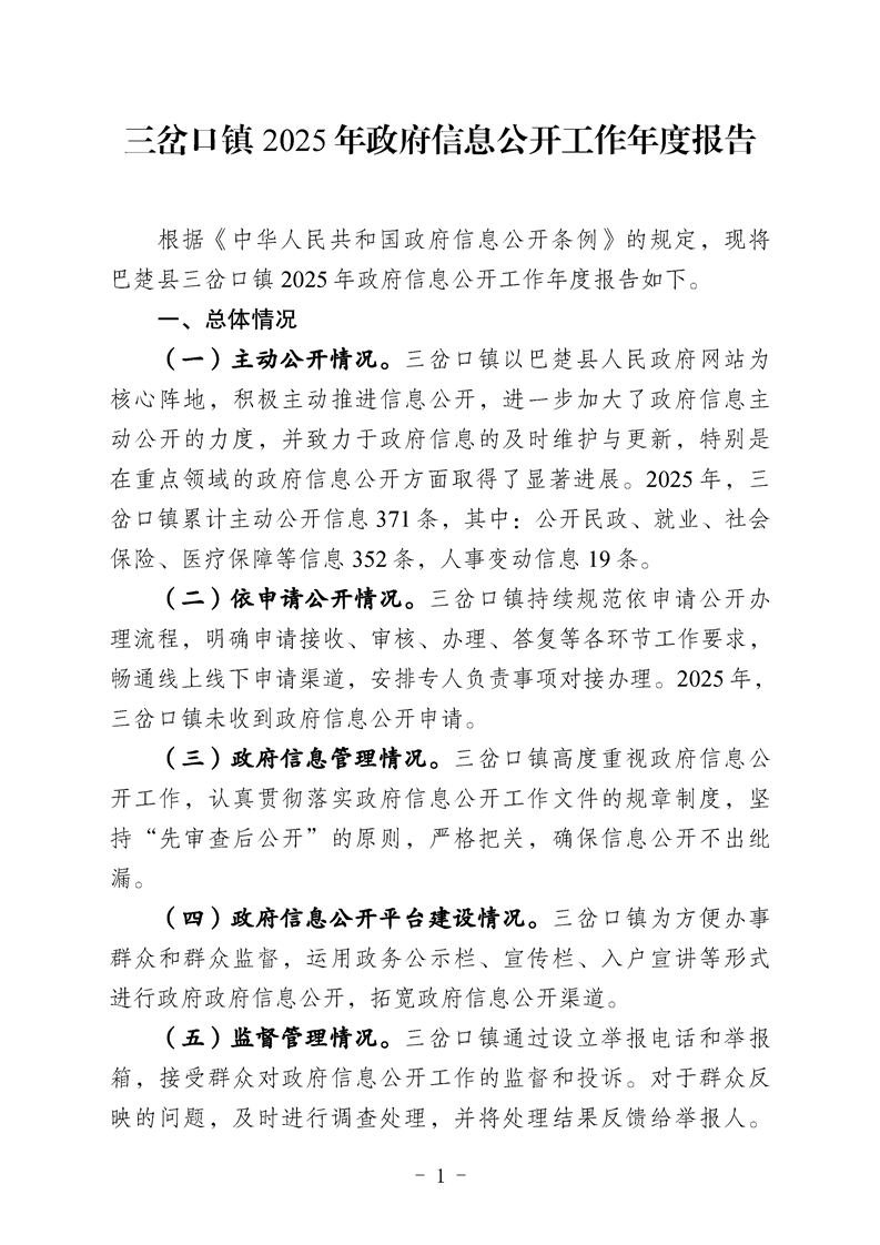 三岔口镇2025年政府信息公开工作年度报告