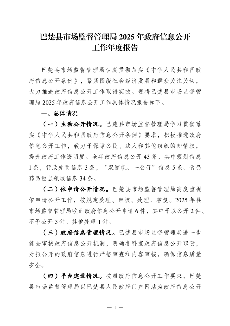 巴楚县市场监督管理局2025年政府信息公开工作年度报告