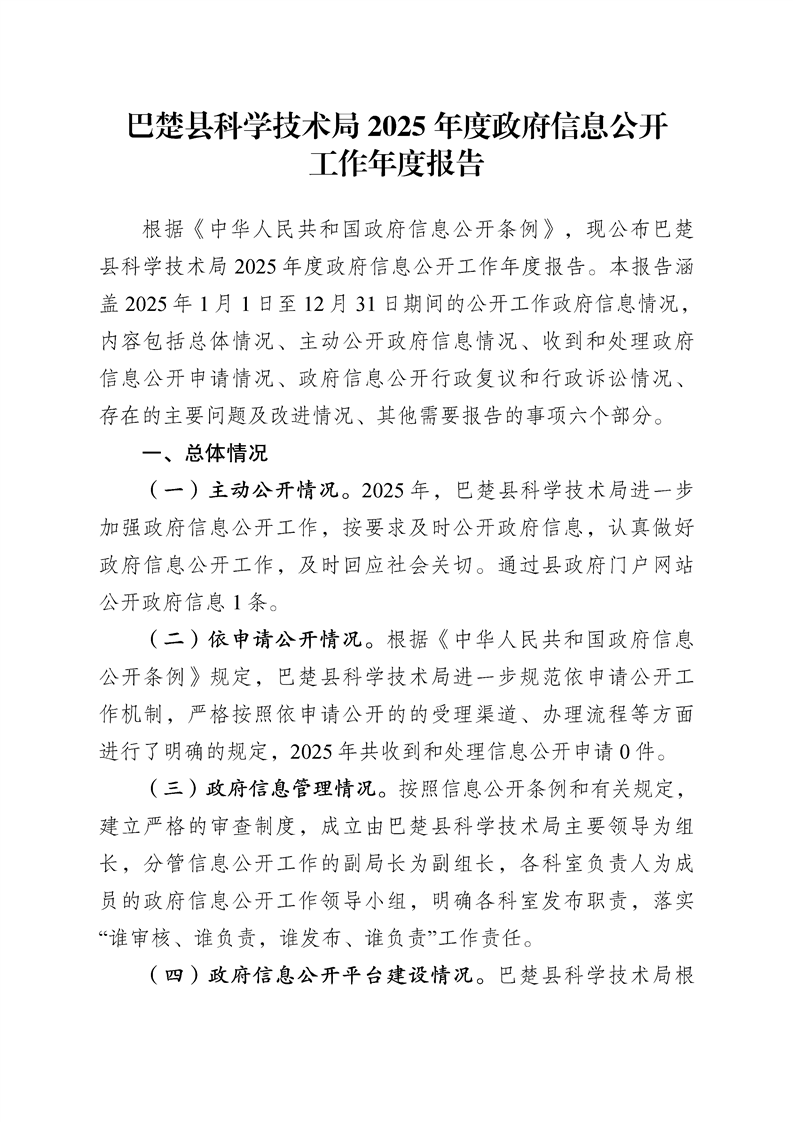 巴楚县科学技术局2025年政府信息公开工作年度报告