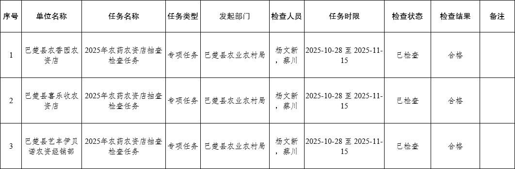 2025年巴楚县农业农村局“双随机、一公开”监督抽查结果公示