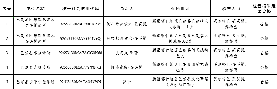 2025年巴楚县卫生健康委员会对医疗机构监督抽查结果公示